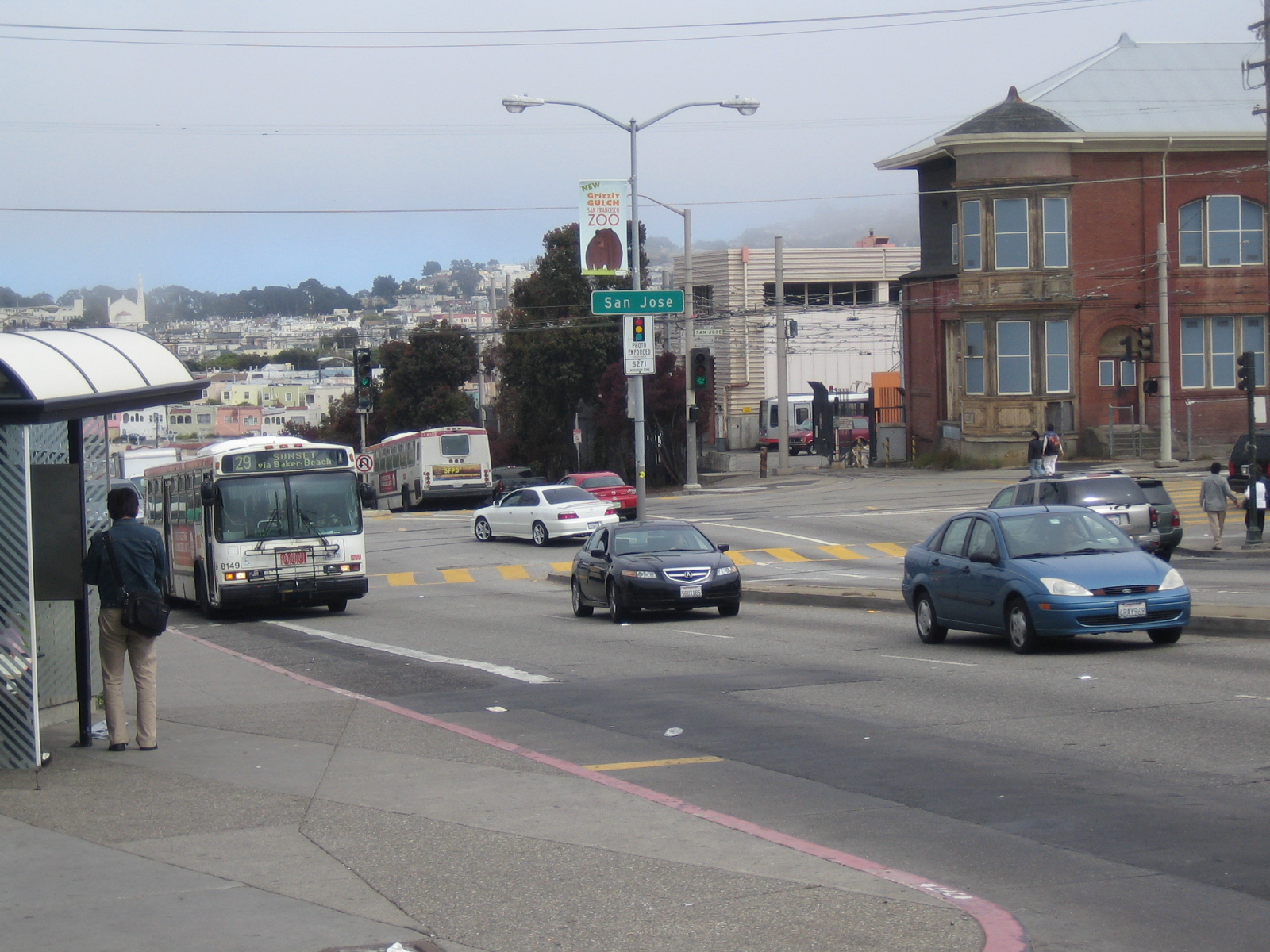 Following are three photos I took back in 2007 at an intersection across the Balboa Park BART Station, where I thought I hit the jackpot in terms of watching the Muni’s various transport modes pass by. Think bird-watching but replace the birds with buses and LRTs.