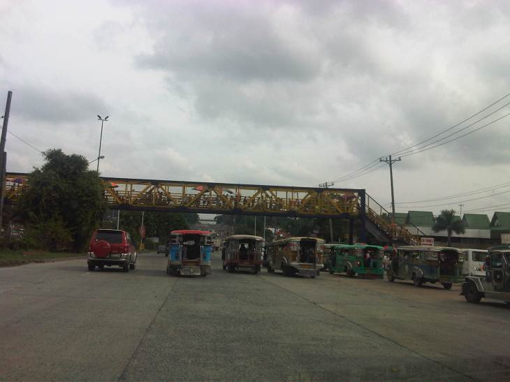Overpass across Ever Commonwealth where vendors have also set up to sell merchandise. The design evokes those of old steel truss bridges in Manila across the Pasig River like the Quezon and Ayala Bridges. Notice the congestion at the overpass at the left portion of the photo.