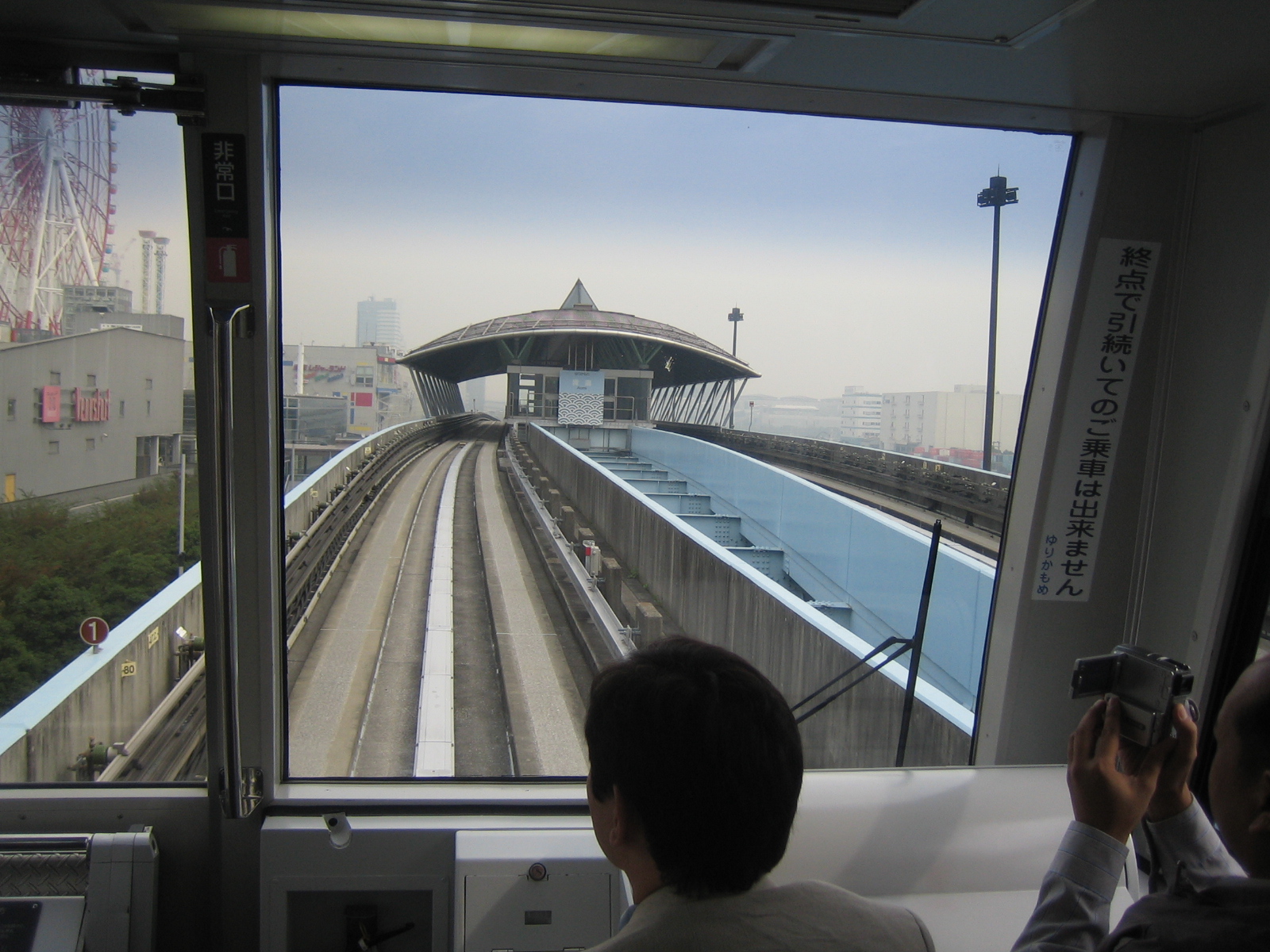 The Yurikamome is driverless (thus, automated). This is the view from the most coveted seats on the transit as the AGT approaches a station.