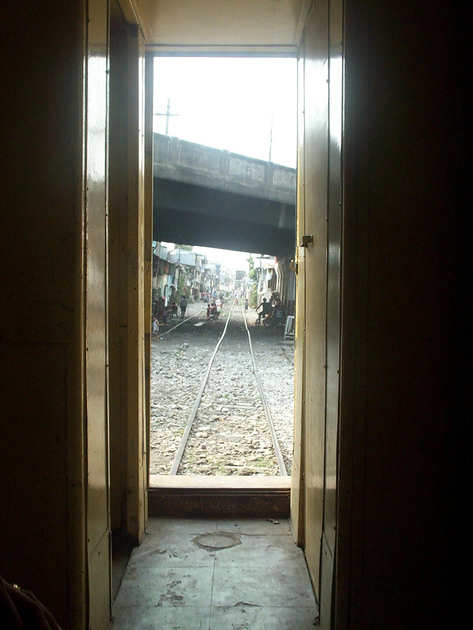 At the end of our field visit to the PNR yard in Tutuban, our group was treated to a free ride to the Buendia (Gil Puyat Ave.) Station. Some of us sat on the last car so we were afforded a view of the railway tracks and the environment along the PNR right of way. The result is a set of photos that I like to call “a peep into the train’s backdoor.”