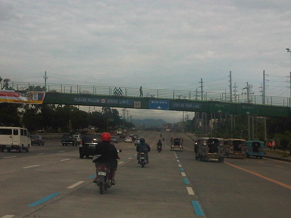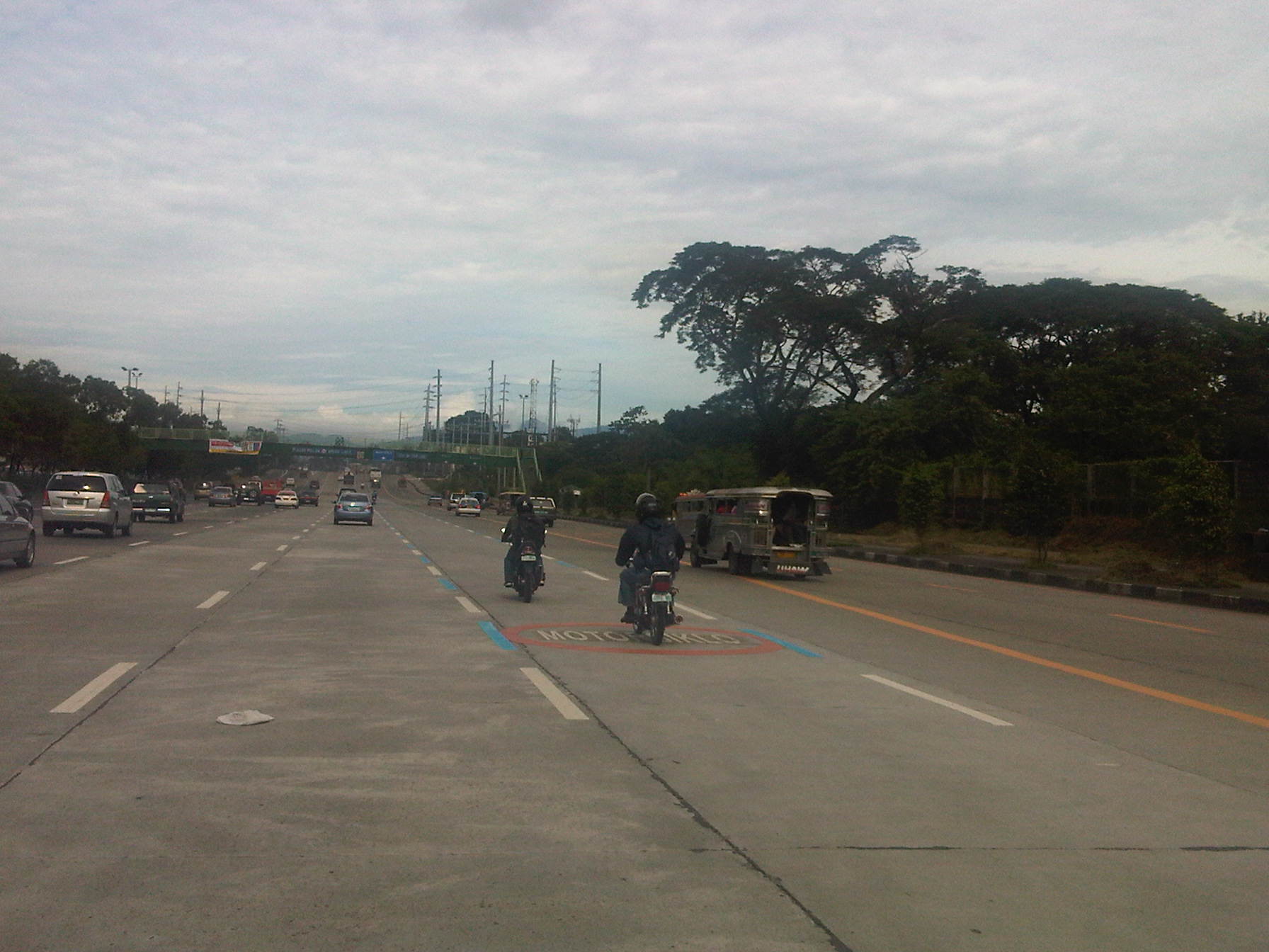 As the traffic flow decreases, partly due to the control imposed by the traffic signal upstream at the Tandang Sora intersection, lanes become less congested – motorcycles are then able to return to their designated lane.