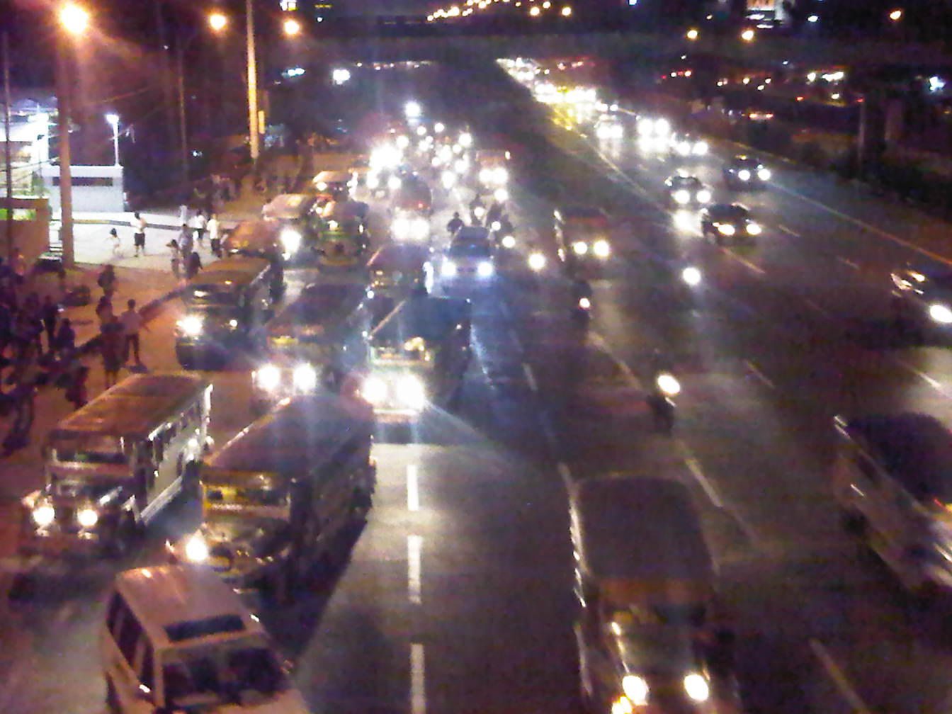 I took the opportunity of taking a few photos after an interview conducted atop the pedestrian overpass along Commonwealth across from Puregold and near the Tandang Sora flyover. Below are a few photos taken during nightfall on Monday showing typical behavior of drivers and riders in the vicinity of the foot of the Tandang Sora flyover.