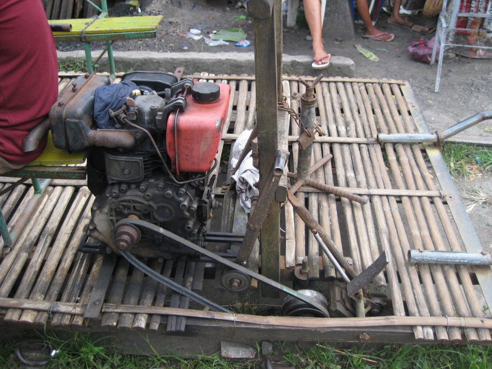 Driving wheel – while trains may be powered by locomotives, the trolleys have motors typically used by pumpboats and by the tricyboats found in the Visayas and Mindanao (tricycles powered by the same motors). The driving wheel is connected to the motor to move the vehicle and the contraption on the lower right and just beside the driving wheel is the brake mechanism. Thus, the driver is usually positioned just behind the motor where he has access to both the motor and the brakes.