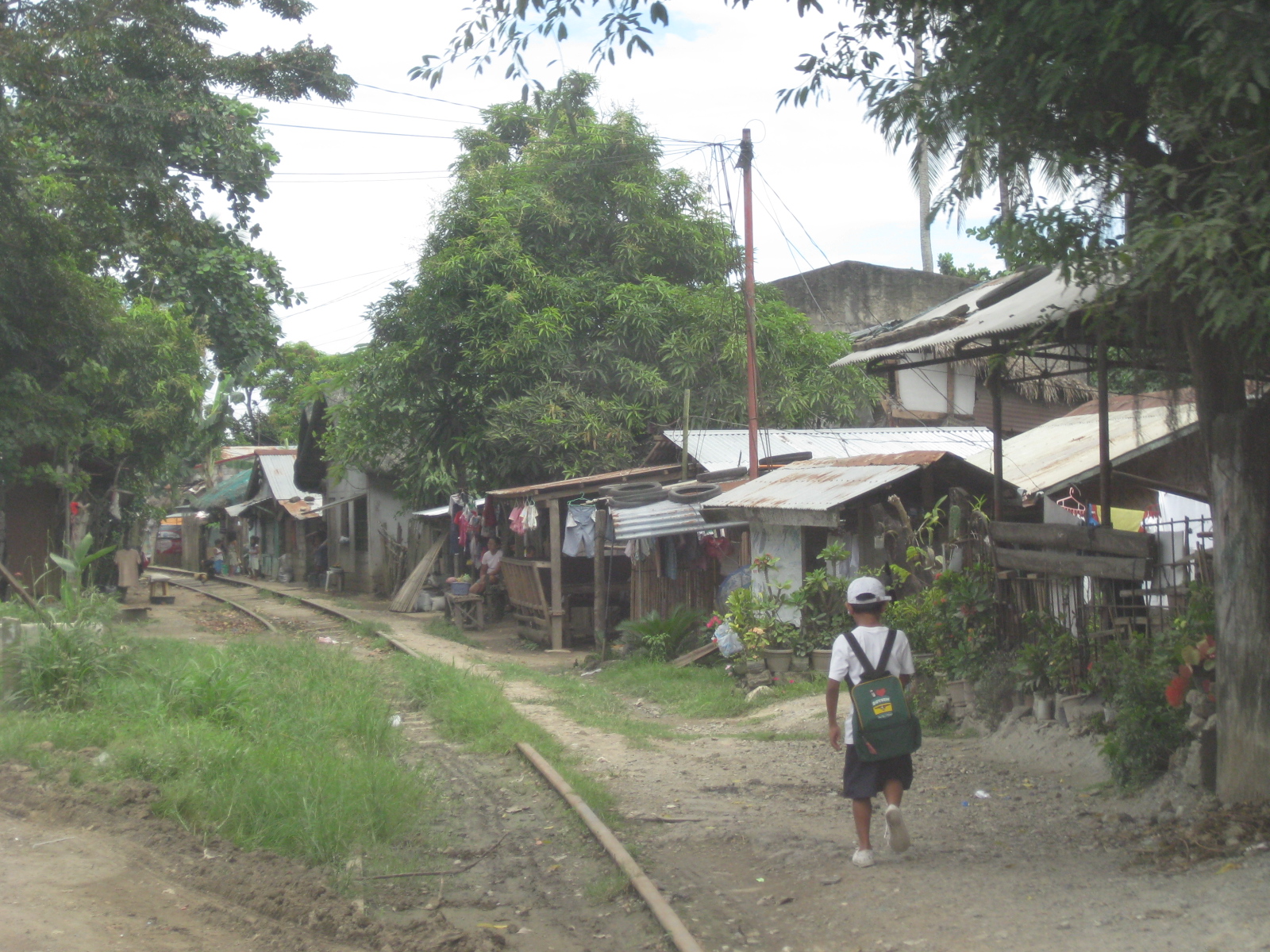 Neglected railway tracks – note the grass growing along the tracks and covering the rails. Also, from the looks of it some ties seem to be missing or just buried in the dirt. Many houses and shanties are obviously within the 30m ROW of the PNR. Such situations create a high risk for untoward incidents should rail services become regular and more frequent.