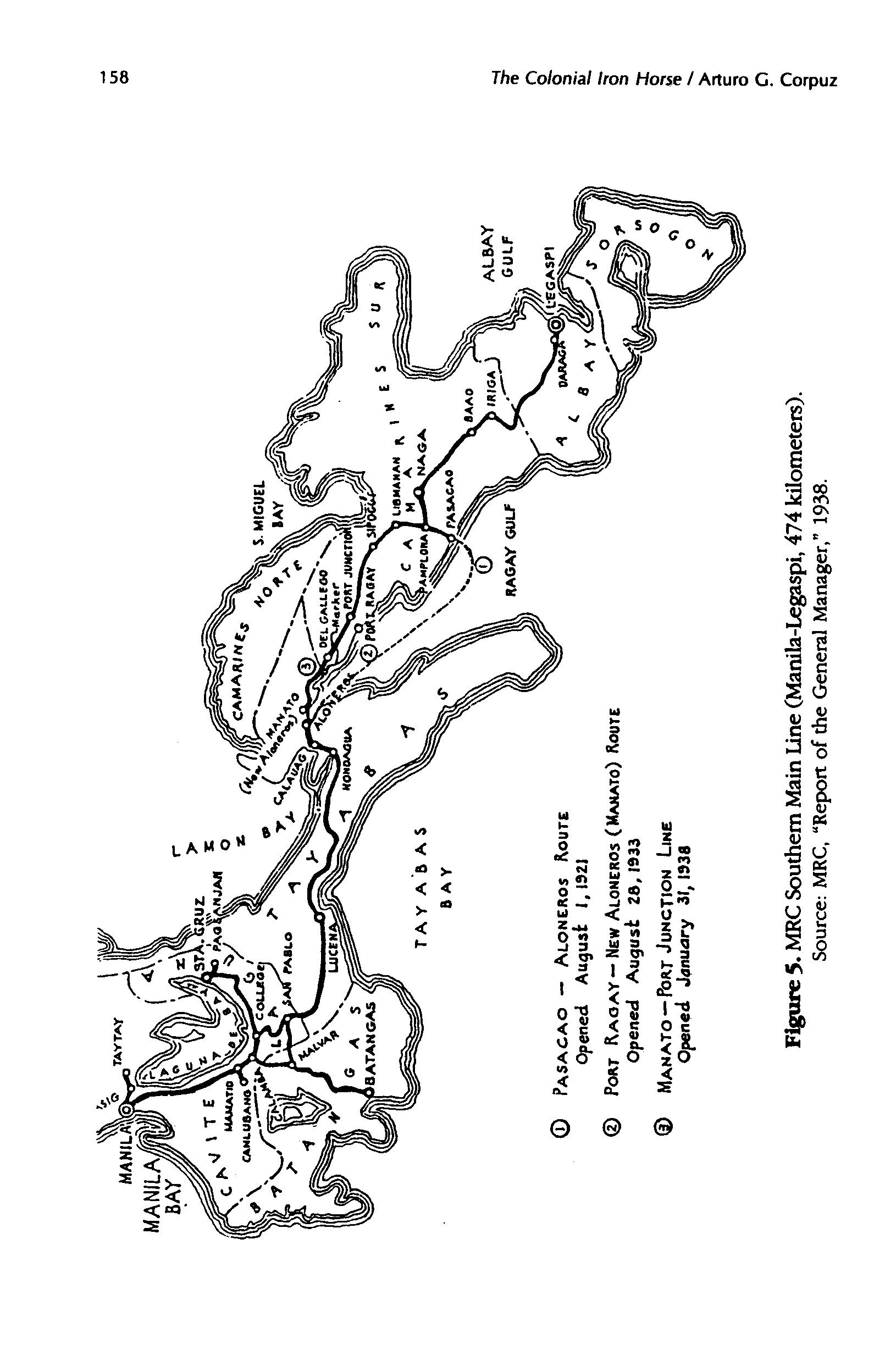 - The Main Line South started from Manila and covers practically the same route as today’s commuter and Bicol line all the way to Quezon and the Bicol Region. Construction started from two points representing the end stations of Manila and Legaspi with the northern segment terminating at Aloneros (Guinayangan, Quezon) and the southern segment at Ragay, Camarines Sur. The gap was eventually connected through Tagkawaya, Quezon in 1938.