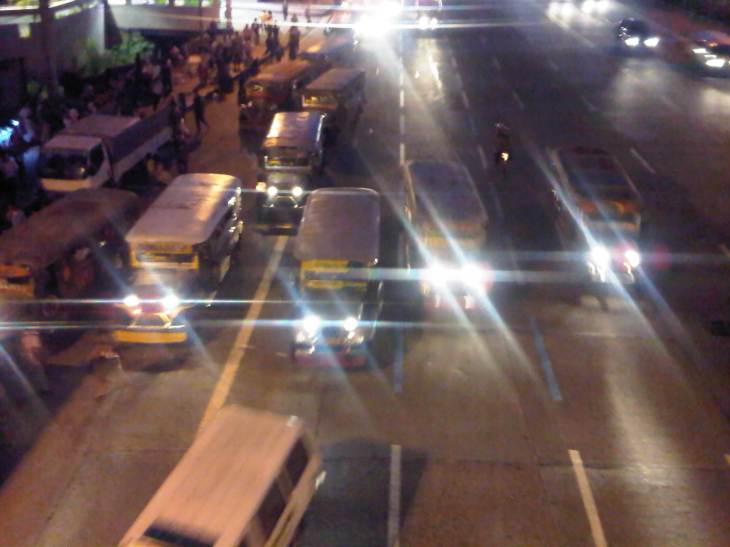 I took the opportunity of taking a few photos after an interview conducted atop the pedestrian overpass along Commonwealth across from Puregold and near the Tandang Sora flyover. Below are a few photos taken during nightfall on Monday showing typical behavior of drivers and riders in the vicinity of the foot of the Tandang Sora flyover.
