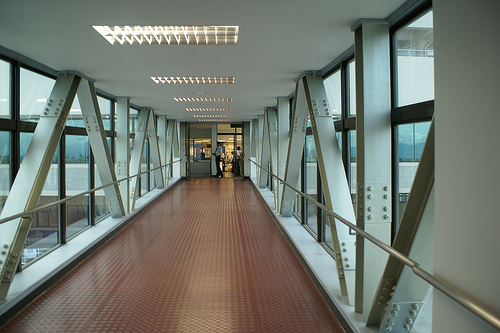 Air bridge – provides access to and from the terminal building to the plane on the tarmac. This is level with the aircraft’s doors and eliminates the need for ladders often employed in other airports (usually domestic).