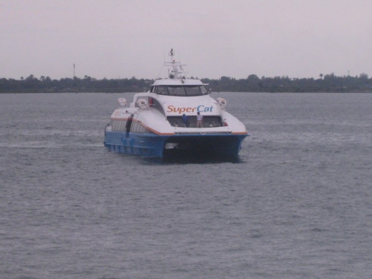 Twin-hulled SuperCat approaching the Cebu port