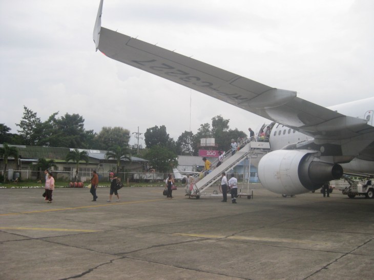 Ceb Pac turbo prop aircraft (ATR 72-500) loading passengers. These aircraft typically serve shorter routes like CDO-CEB or CDO-DVO. Jet aircraft (A319, A320 or A330) usually services the longer domestic routes like CDO-MNL or DVO-MNL.