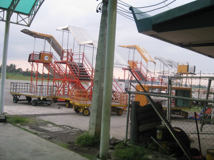 Passengers deplaning from the aircraft’s rear (aft) door. That’s Prof. Tetsuo Yai of Tokyo Tech smiling as he descends from the plane. PAL’s staircases actually look more sturdy than the makeshift ones used by CebPac.