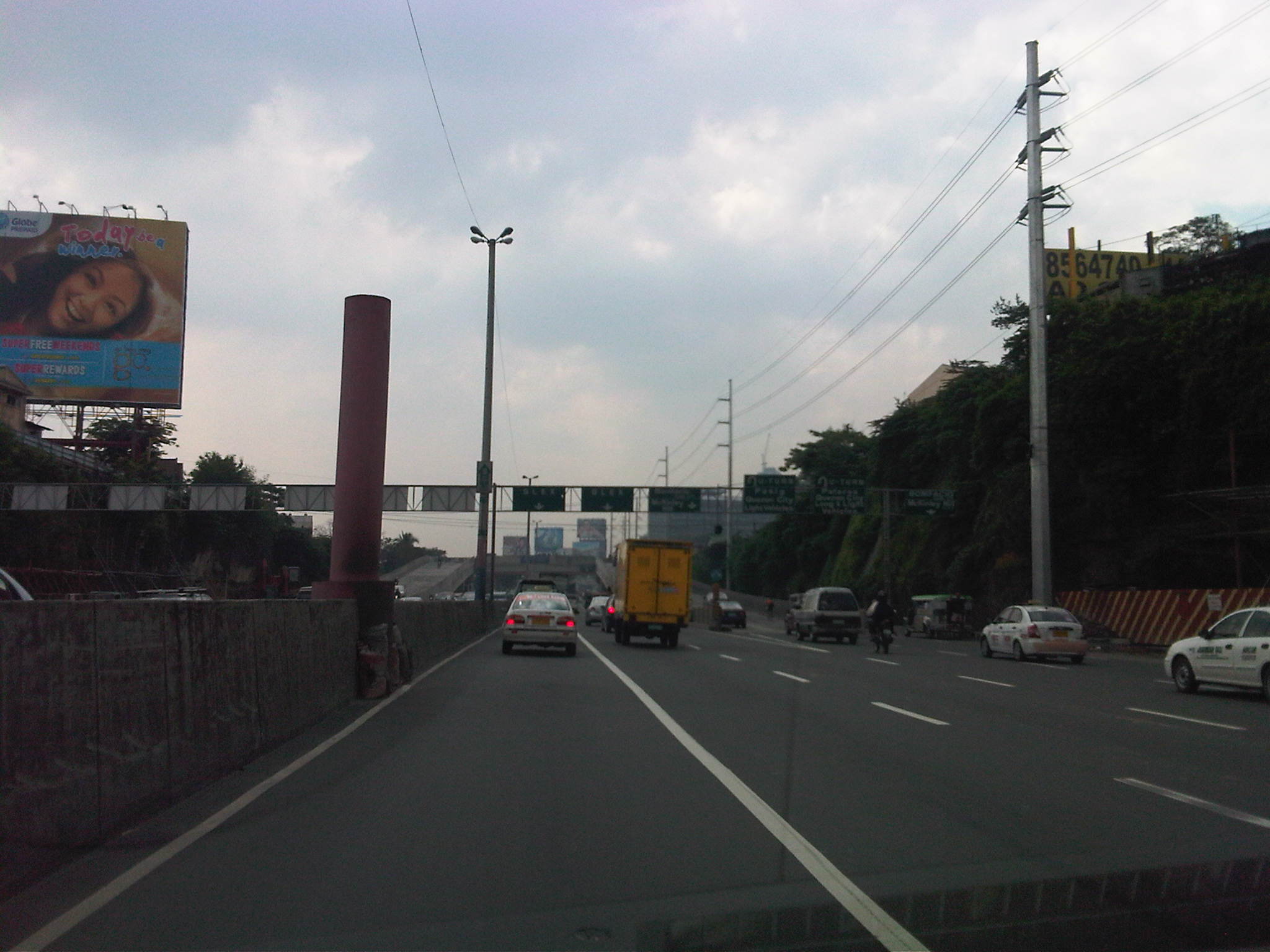 Close-up of the flyover construction. The temporary columns and barriers in the middle of C5 can be quite tricky even during the day and the space is just enough for 2 cars to fit through the middle lanes. With trucks its again a different situation as they often require more space given the behavior of their drivers encroaching upon the adjacent lanes.