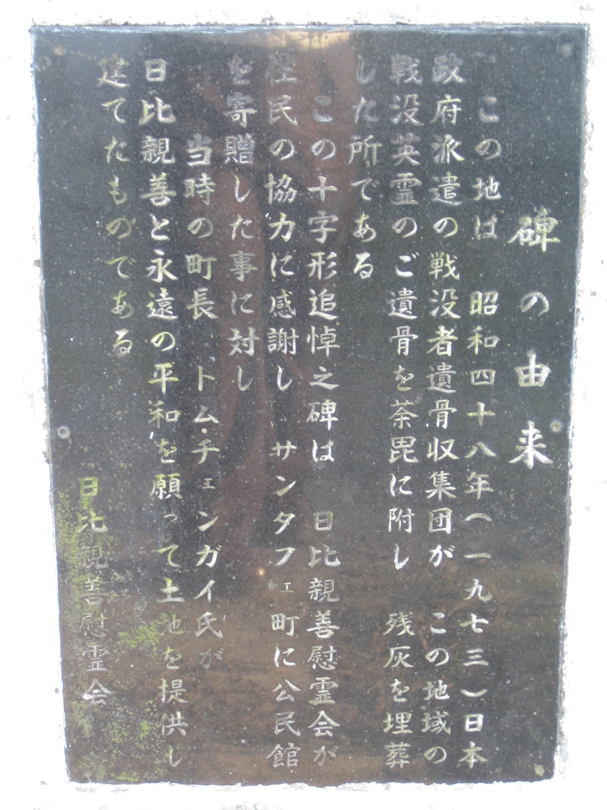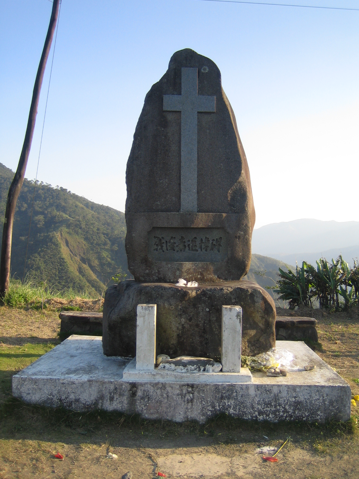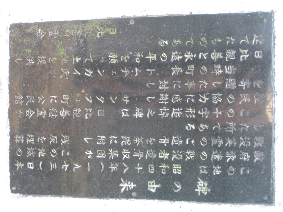 Stone marker with inscriptions in Japanese commemorating those who fell in the battles at Balete Pass.