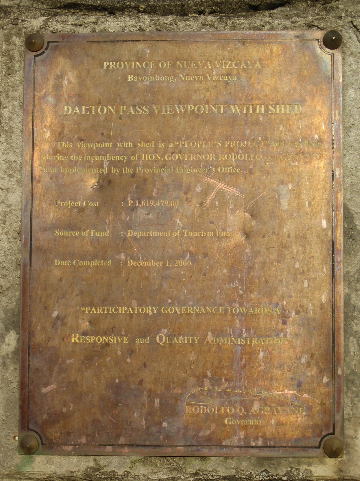 Balete Pass is located in the town of Bayombong in Nueva Vizcaya province. This market is for the viewdeck completed in 2000.