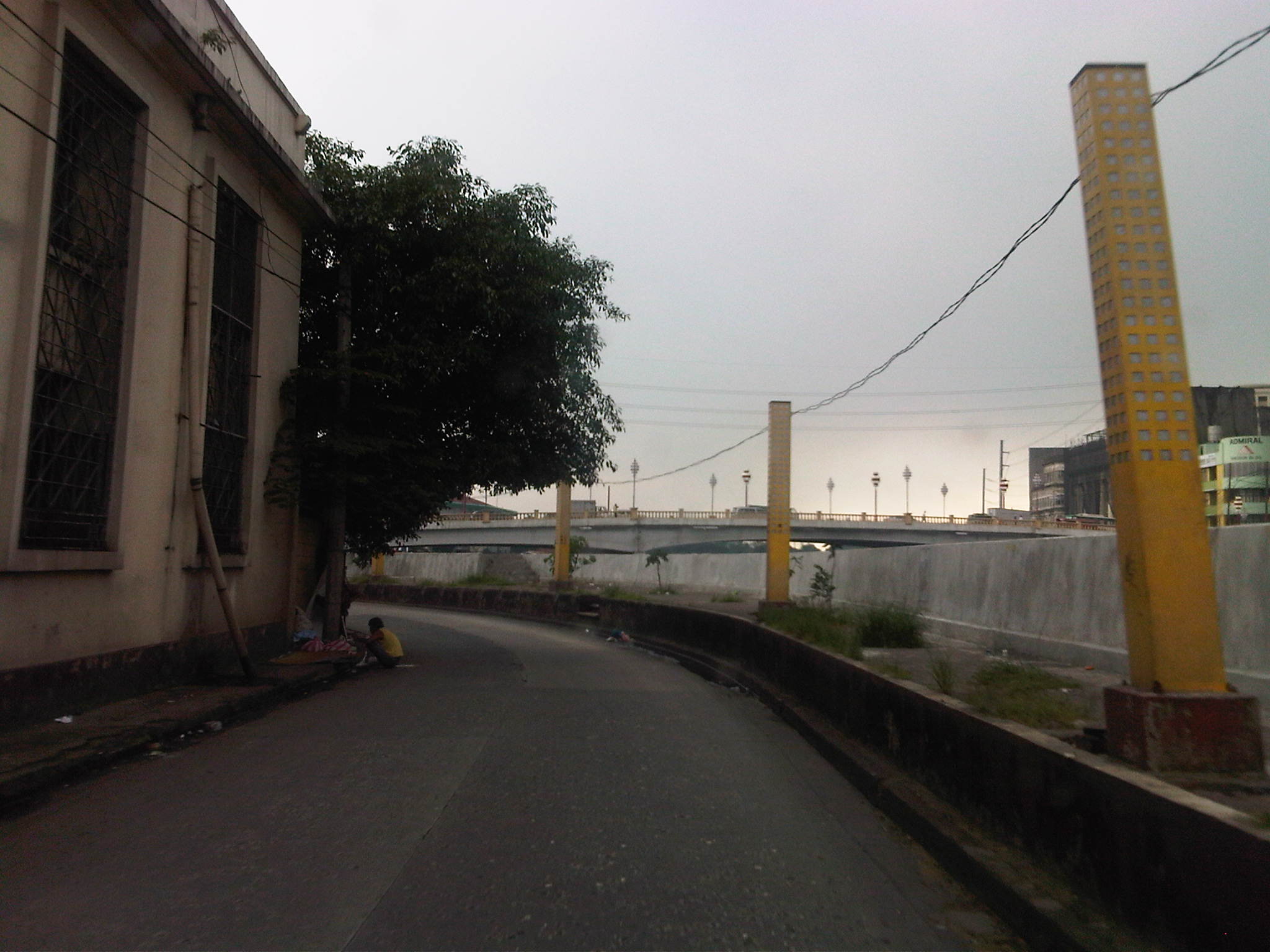 The lamp posts along the road look like they were inspired by the capiz windows of old houses. The homeless include the individual pictured here who was washing clothes using the flowing water from various sources including a leaking water pipe. This section is often flooded during the wet season due in part to its location and elevation with respect to the Pasig River.