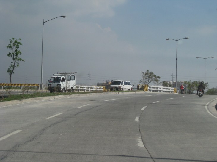 Among the issues raised during the Philippine presidential elections in 2010 was the persistent and widespread graft and corruption in government. Candidates had to present their platforms and emphasize how they were going to address graft and corruption in the various agencies in all branches of government (executive, legislative and judicial). The slogan of one candidate was “Sipag at Tiyaga,” which translated into “hard-working and persevering.” A play was made on this, transforming the slogan into “C5 at Taga,” referring to the road and an allusion to someone getting a cut (benefited) from the funds. The allusion, of course, was to the same candidate. Objectively speaking, however, the extension of the road made sense because C5 practically terminated at the South Luzon Expressway where a ramp connects it to the tollway. However, the project failed to construct a link (perhaps an overpass) connecting the extension to the existing alignment on the other side of the tollway. The following photos were taken during one recon survey conducted by our staff for another development project in the area.