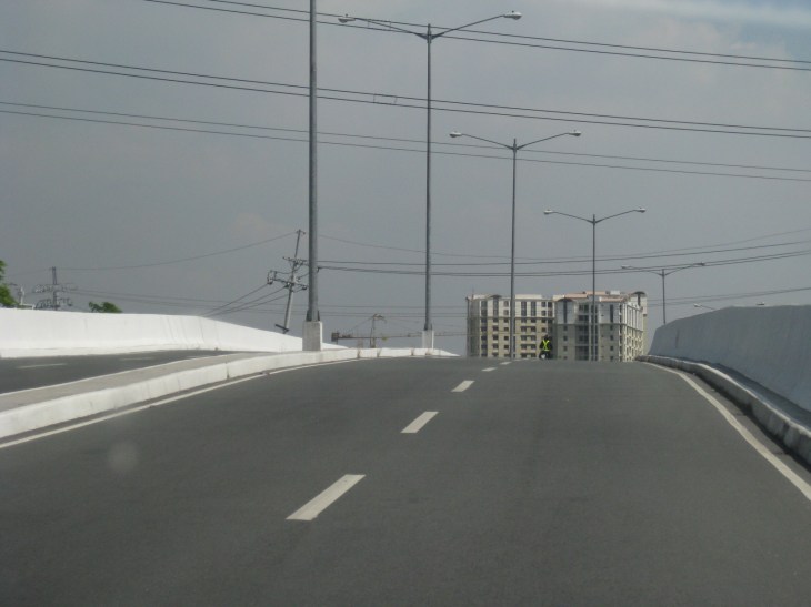 The vehicular overpass does not include pedestrian sidewalks or access. Such are actually necessary considering facilities like this flyover should not be for motorists only but for other travelers as well.