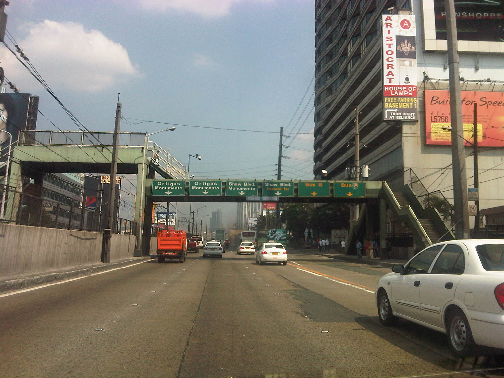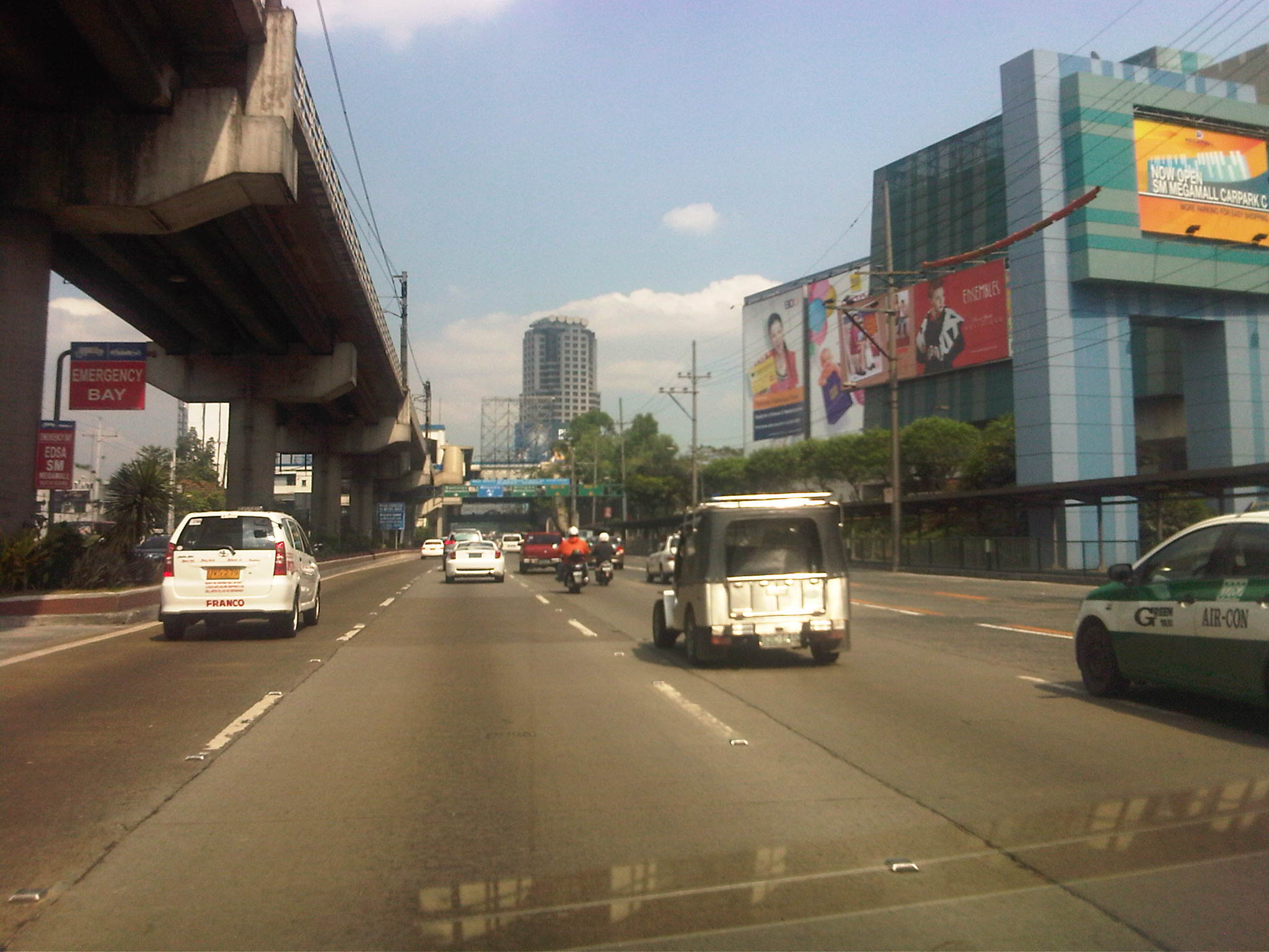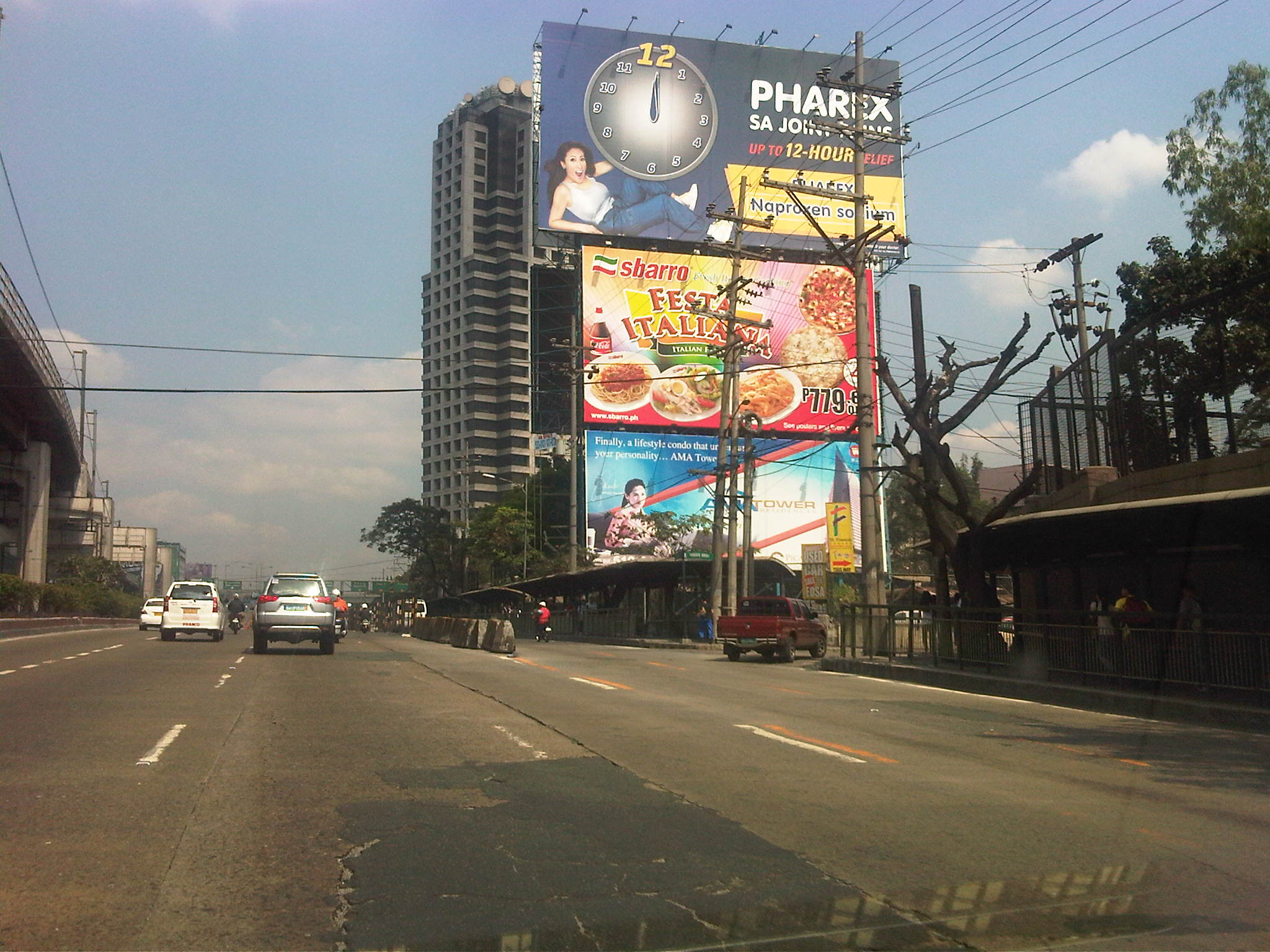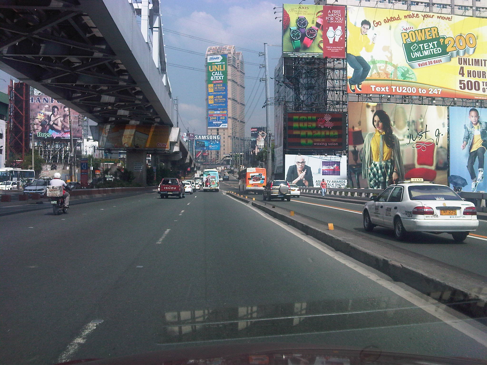 Section across the ADB and approaching Ortigas Ave. One of Galleria’s buildings is seen behind the giant billboards. The MRT