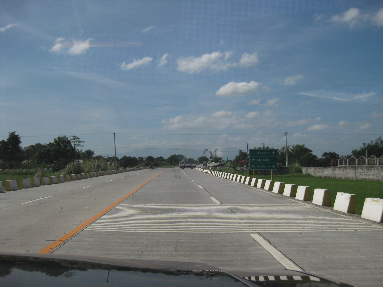 Straight, level section approaching the west junction with the Gapan-San Fernando-Olongapo highway. The tall electric pole marks the junction.