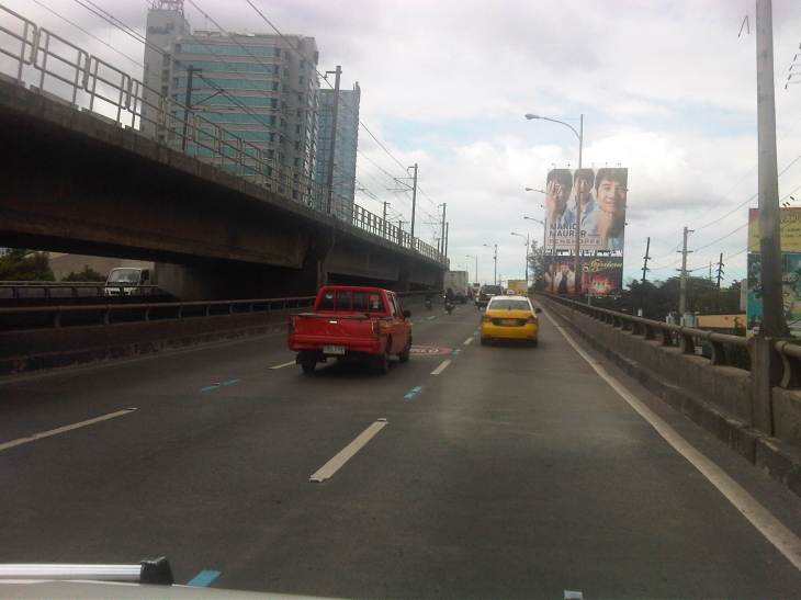 Motorcycle lane prior to the Kamias-East Avenue overpass along EDSA.