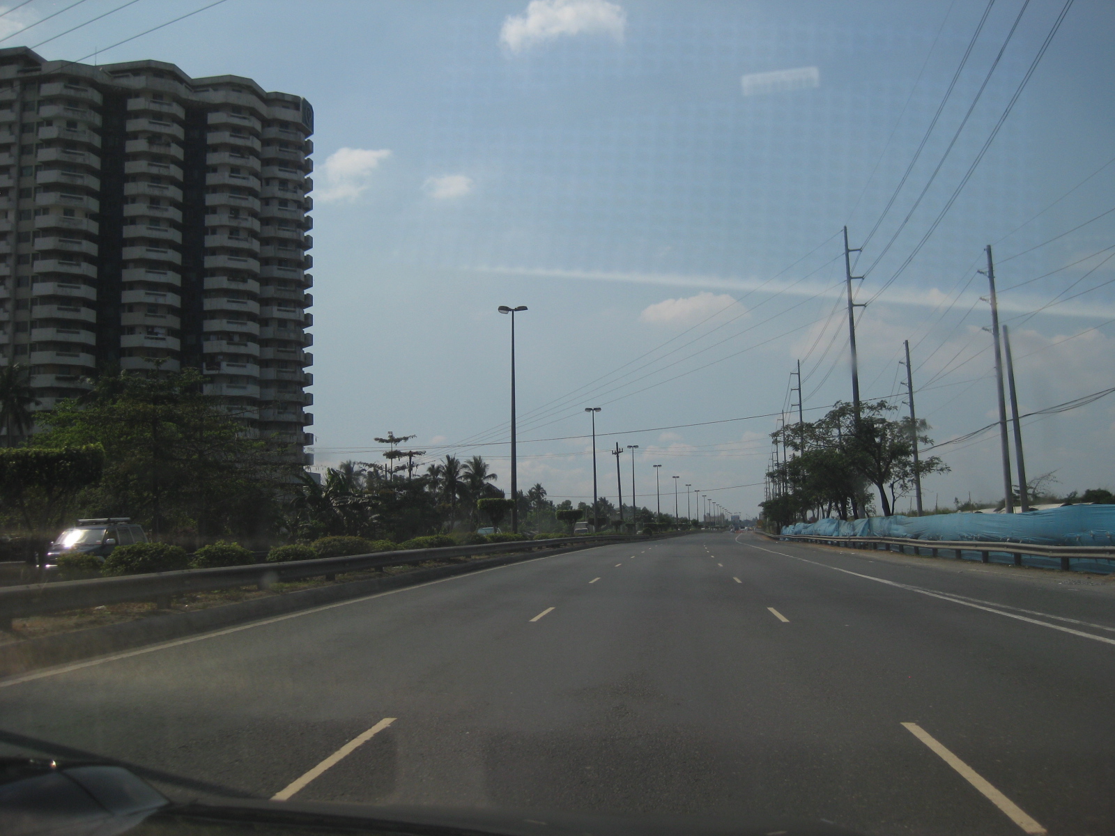 From the intersection, it is practically free flowing traffic leading to the toll plaza. On one side of the expressway are residential/office condominium developments and on the other side are undeveloped or under-developed reclamation areas.