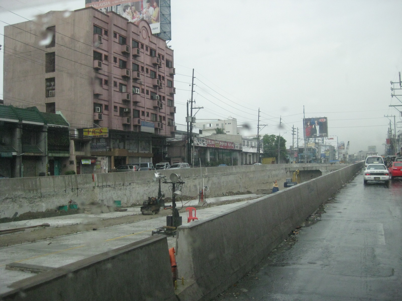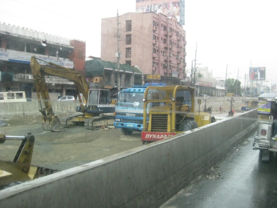 Backhoe at unpaved section of the underpass. The design reminds me of the underpass section along the same Quezon Ave. at its junction with Agham Road. Visible from the photo are braces/anchors embedded into the sides of the walls to reinforce these and prevent collapse.