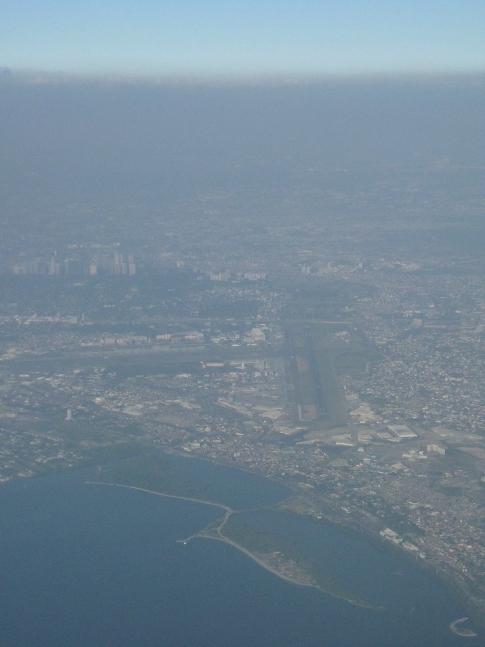 Another shot of the airport runways with the haze above. At the lower part of the photo and along the approach to NAIA’s main runway is a bird sanctuary being threatened by plans to reclaim and develop the area.