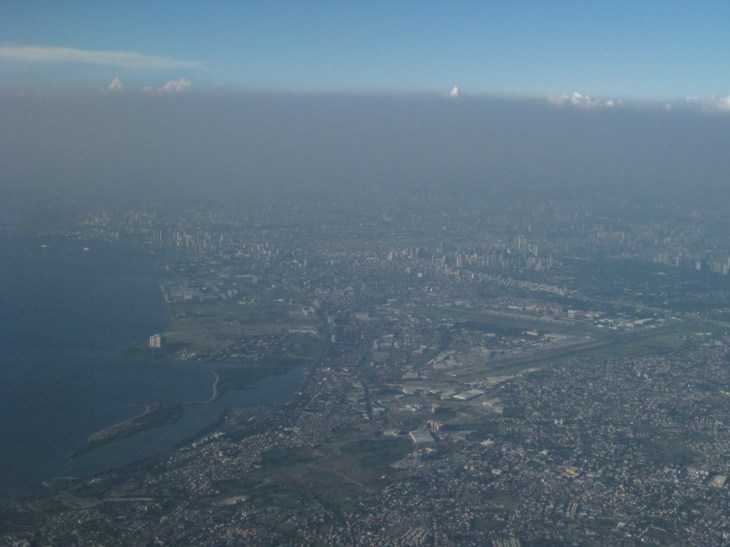 Another shot of the airport runways with the haze above. At the lower part of the photo and along the approach to NAIA’s main runway is a bird sanctuary being threatened by plans to reclaim and develop the area.