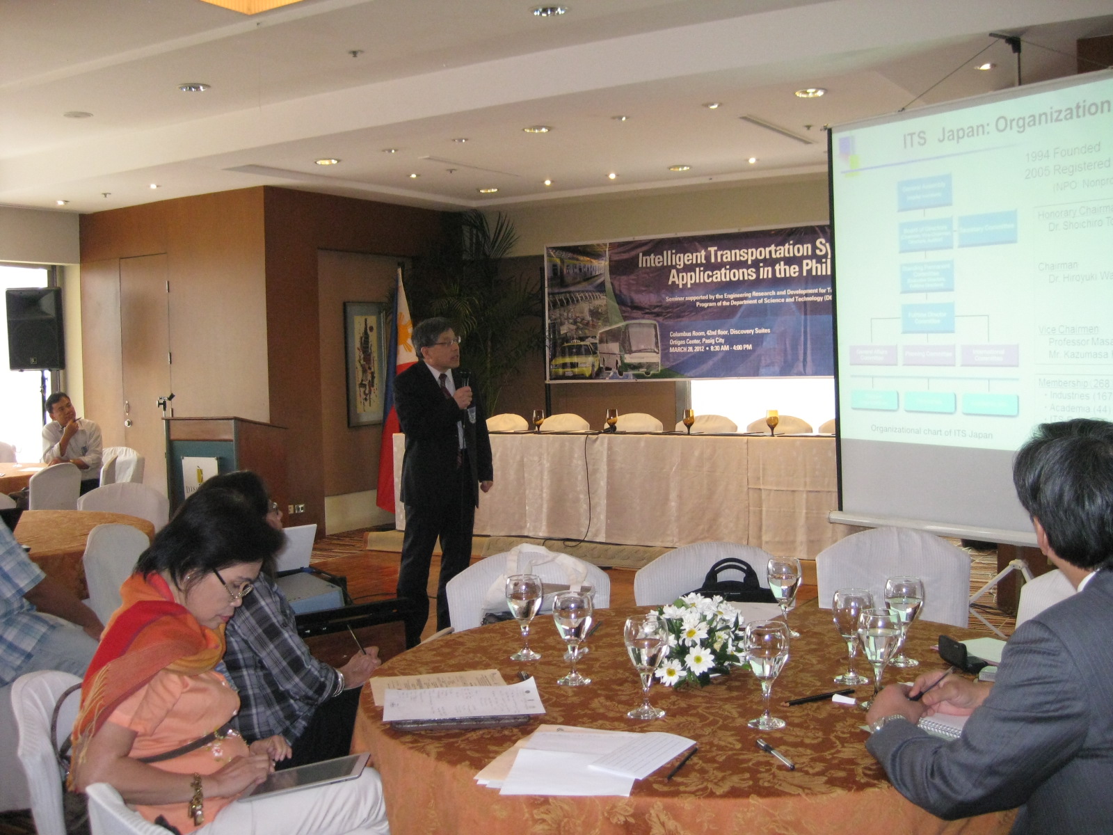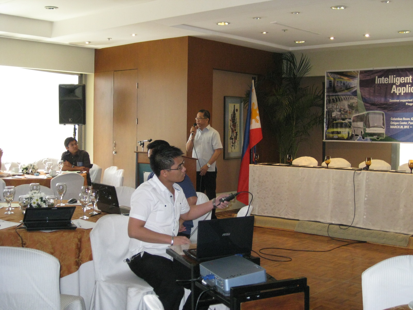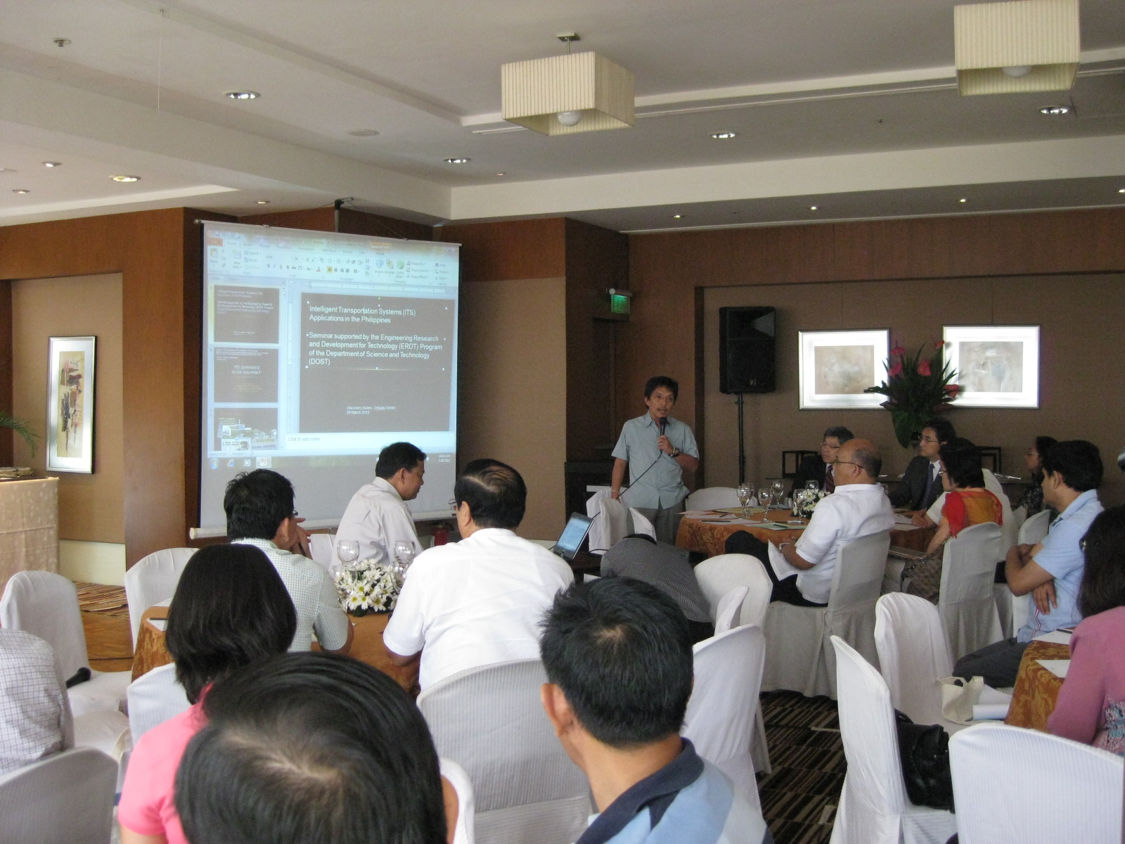The Seminar on Intelligent Transport Systems (ITS) Applications in the Philippines was held last March 28, 2012 at the Columbus Room of the Discovery Suites in Ortigas Center, Metro Manila. The seminar was organized by the Institute of Civil Engineering (ICE) and the National Center for Transportation Studies (NCTS) of the University of the Philippines Diliman and was supported by the Engineering Research and Development for Technology (ERDT) Program of the Department of Science and Technology (DOST). The main objective of the seminar was to bring together the academe, government agencies and industry to discuss the state of ITS in the country. The seminar was a venue for presentations and discussions where persons interested in ITS could interact with one another, hopefully forging future partnerships to promote ITS in the country.