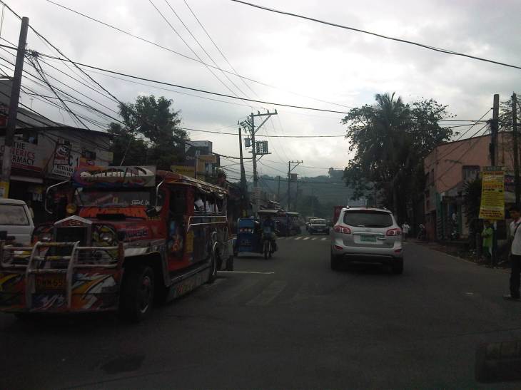 Weathered – section right after Masinag Junction where vehicles on the left are bound for Masinag. The section has 4 lanes with faded or no markings, no shoulders and no pedestrian facilities. There are significant on-street parking including those in front of auto repair shops.