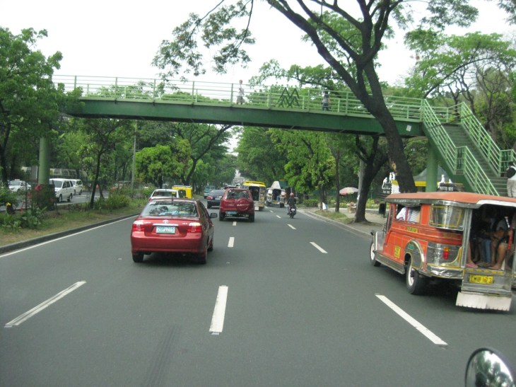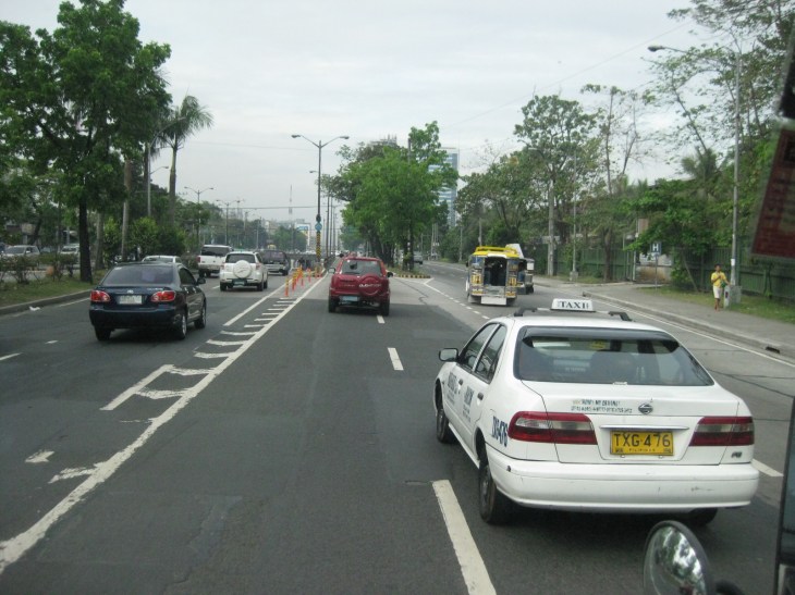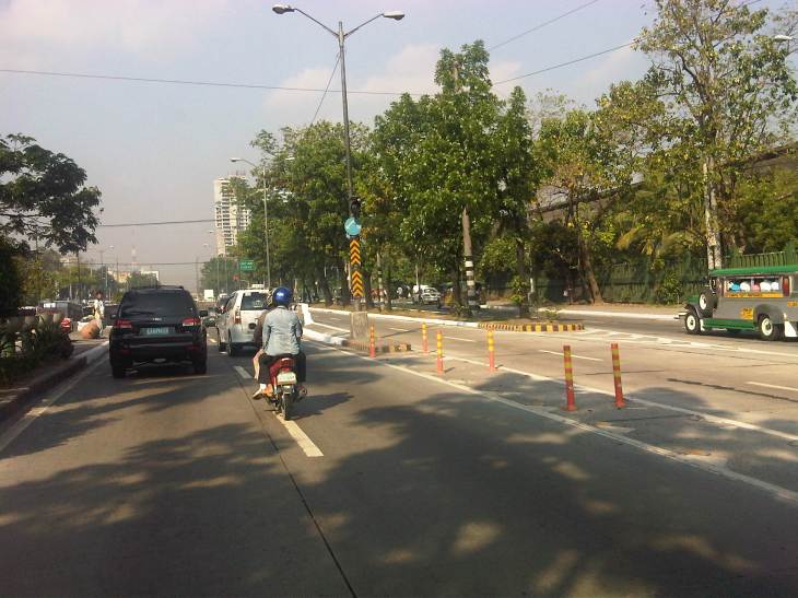 This section of Quezon Ave. has 4 lanes per direction and these are divided by a wide median island. Pavement is of excellent condition with clear markings to guide motorists.