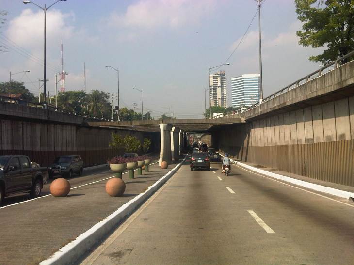 Underpass section approaching the junction with EDSA – at the junction, there is essentially 3 levels of roads: the underpass along Quezon Ave., the junction itself, and the overpass along EDSA