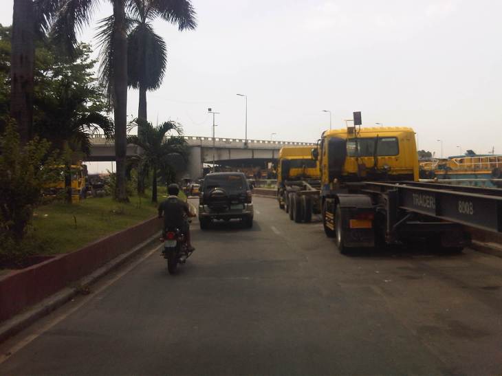 More queuing – just when we thought the queue of trucks were only because of the South Harbor’s container terminal, we saw this line of trucks past the gate. The buildings on the right are DPWH’s (NCR and Bureau of Maintenance). There is often no other choice but to run counter-flow to the traffic in order to get to our meeting.