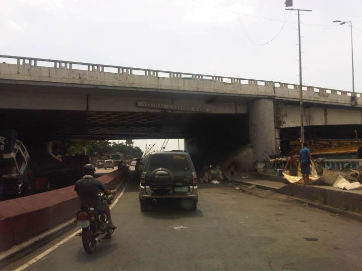 Approach to the Del Pan Bridge – the bridge is where Radial Road 1 ends and Radial Road 10 begins. We didn’t cross the bridge spanning the mouth of the Pasig River but instead took the service road that led under the bridge to what is technically part of the Muelle Del Rio. The interchange provides access to Baseco and the container terminal as well as for vehicles making U-turns towards the southbound side of Bonifacio Drive.