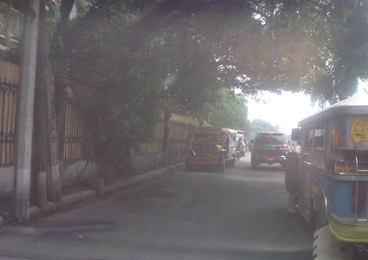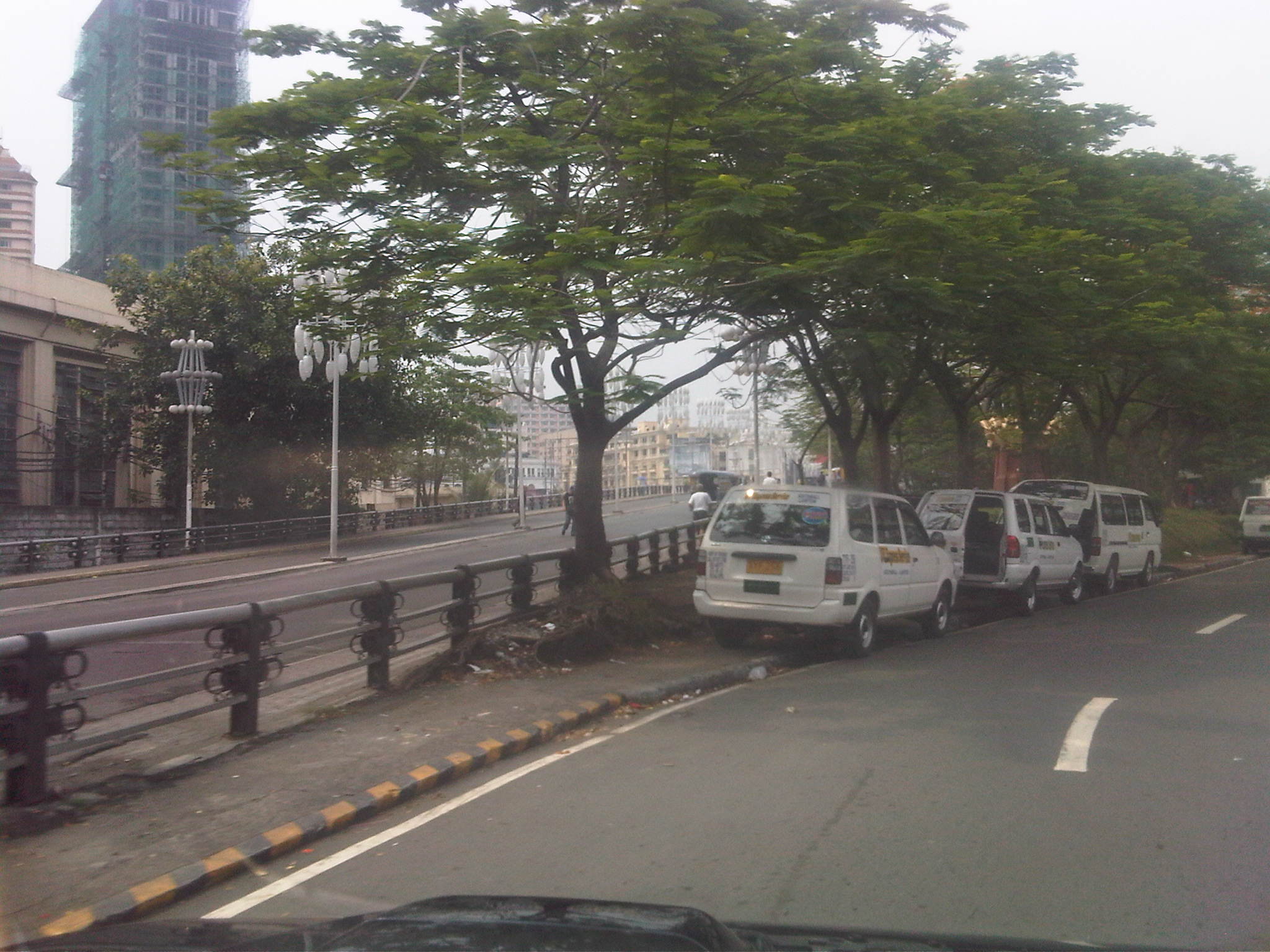 Approach from the Quezon Bridge – UV Express (FX taxis) parked along the roadside