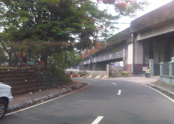 A bridge too close – the road comes quite close to the approach to MacArthur Bridge (the road on the other side of the barrier), which leads from Padre Burgos to Carriedo