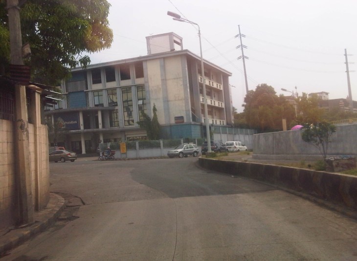 Behind the Post Office – the walls/fence of the post office is vandalized while there seems to be no one using the walkway along the Pasig River at the right of the photo. The yellow poles are light posts. There are no pavement markings along this stretch of the road.