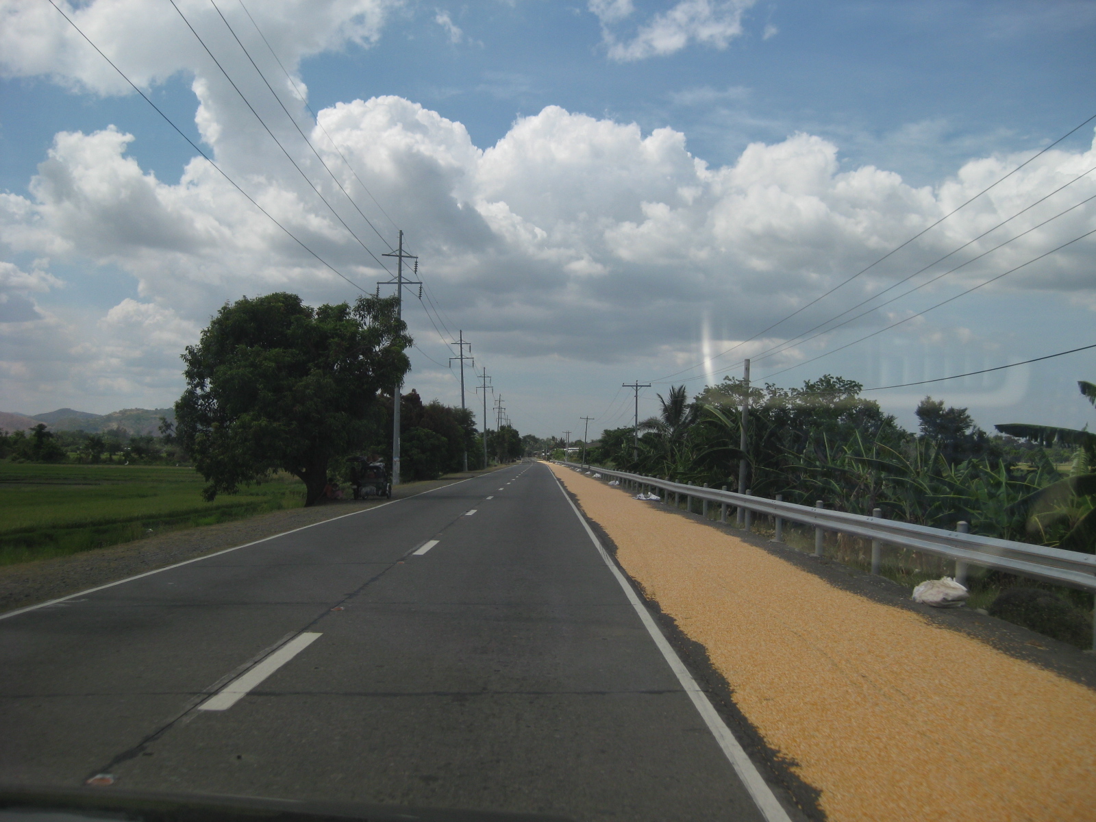 Solar dryers – a common sight along Philippine highways is palay spread out along the shoulders to dry naturally under the sun