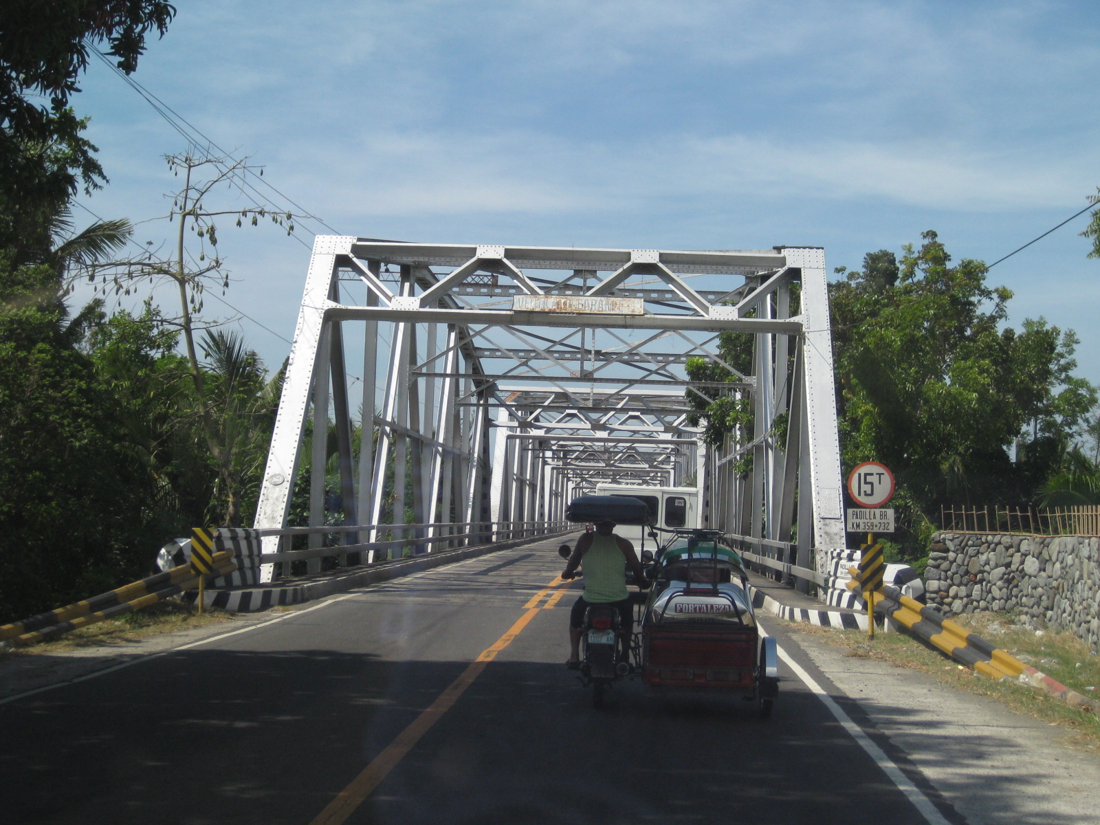 Padilla Bridge – is a steel truss bridge that is older than the Bugallon Bridge not only based on the form (many old bridges along national highways are steel truss bridges) but also on the load limit of 15 tons. The lane widths are also narrower than that of the Bugallon Bridge.
