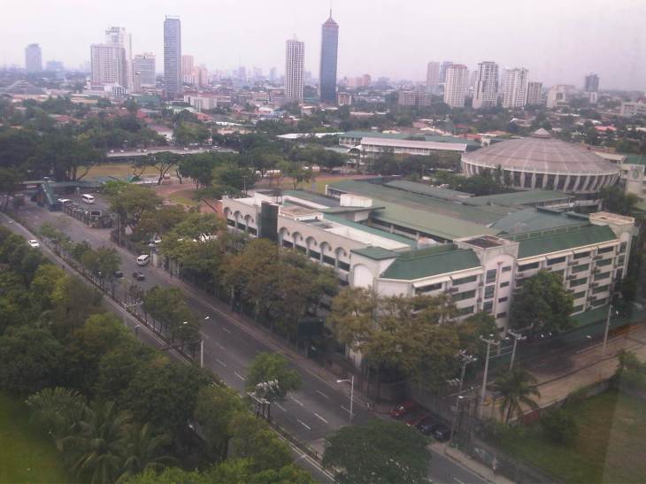 Impact area – photo showing LSGH in the foreground and the Greenhills area in the background, including Virra Mall on the upper left and the condominiums around the Greenhills Shopping Center and behind Camp Crame.