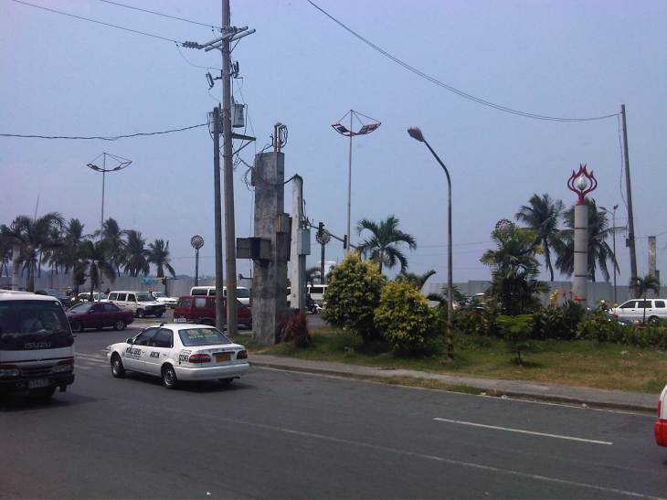 That’s the 4-lane service road along Roxas Blvd. just across from the restaurant. Roxas Blvd. itself is on the other side of the island with the electric post at the center of the photo.