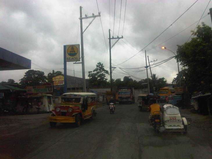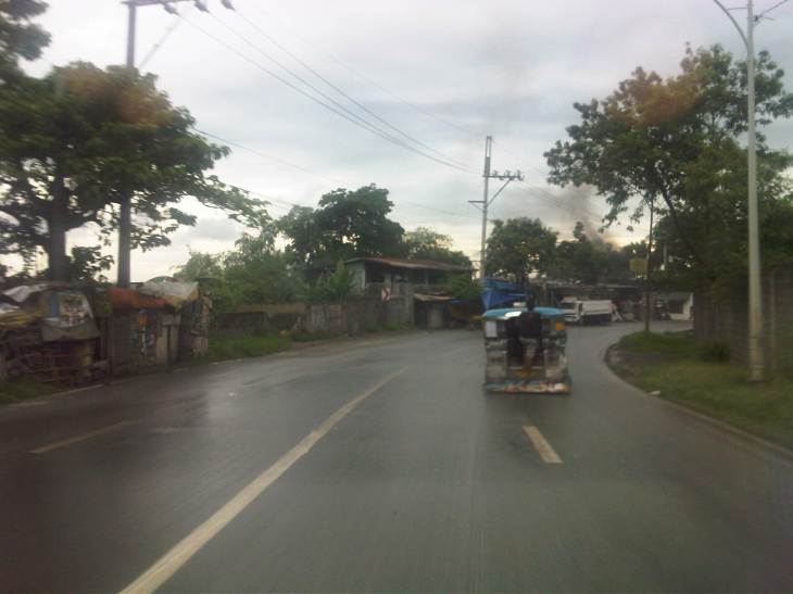 The higher grounds of the Batasan area is visible in the horizon. This road section is conspicuously wide (4 lanes) and we chanced upon passing through while there was light traffic. Note also the more formal structures on either side of the road though pedestrian facilities are still lacking.