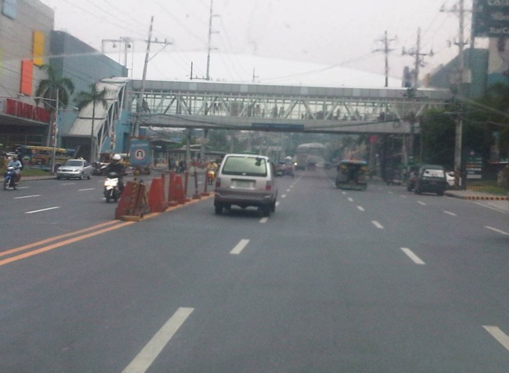 Along one section, the road widens and has along the Ortigas-bound side (right in the photo) a 2-lane service road separate from the main carriageway by a narrow concrete island. The service road is also plagued by parking though its purpose seems to be that for loading and unloading of passengers.