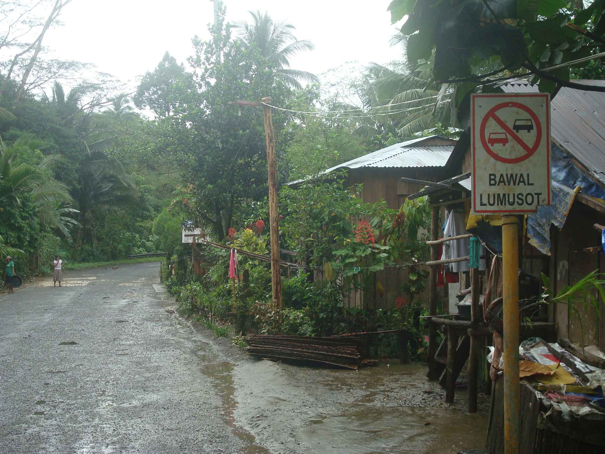 Makeshift houses along the secondary national road also on space usually where the shoulders are. Some houses are located at a hazardous part of the road (i.e., right at the curve and just behind the chevron signs).