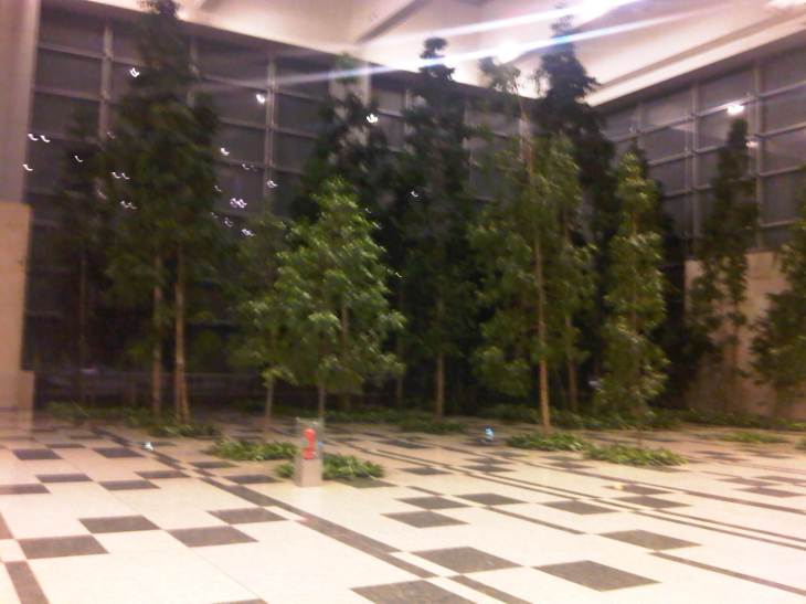 Indoor pocket forest at Changi’s huge Terminal 3 – these were actual trees laid out inside the terminal that visitors could see as they descended the escalators from the concourse to proceed towards the immigration counters.