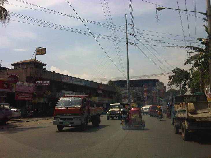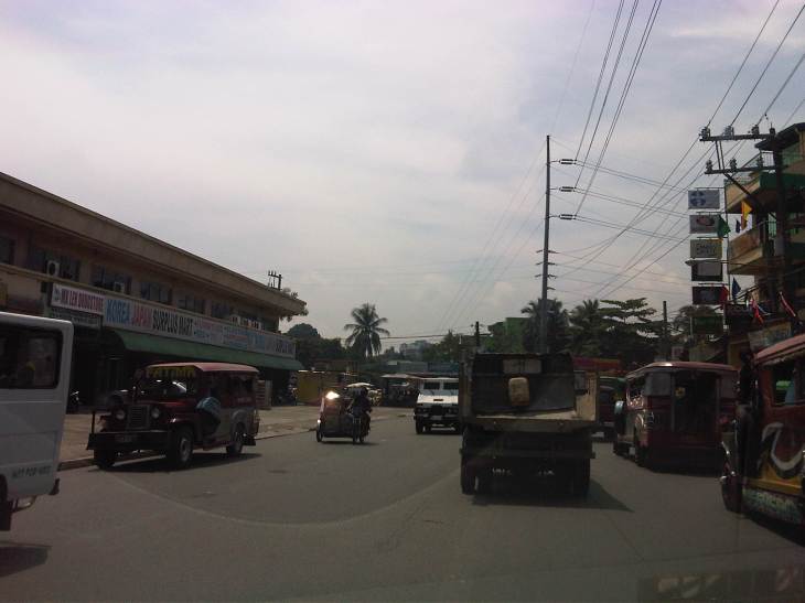 There are also tricycles along the road due to the sidestreets and subdivision entrances connecting to the highway. Public utility tricycles are supposed to be prohibited from using national roads but are common in most provincial areas and CBDs where they are the main mode of transport. In this case, tricycles should be prohibited from using the highway as they are already competing with jeepneys, serving larger areas aside from what should be individual subdivisions or residential districts.