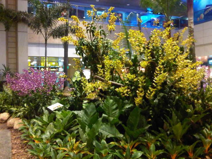 Orchids of different colors help make the terminal “alive” and perhaps contribute to a more relaxed and pleasing environment indoors.