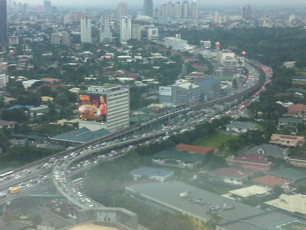 Photo taken from the 35F of the Robinsons-Equitable Tower shows light traffic along EDSA during a holiday. Traffic probably is similar during Sundays while such volumes may be observed on Saturdays only in the early mornings; before 9:00 or 10:00 AM when the shopping malls open.