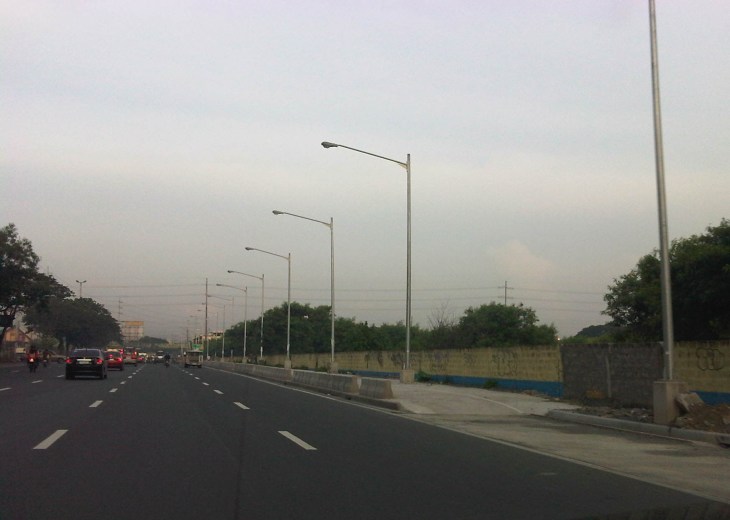 Spacious walkways and bikeways along westbound side of Marcos Highway. Lamp posts are installed to provide sufficient illumination not just for motor vehicles but for pedestrians and cyclists as well.