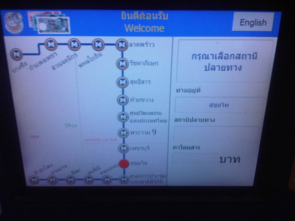 User interface for the Bangkok subway – commuters who can’t read Thai may opt to go for the English option. Unfortunately, the MRT’s system is not integrated or compatible with the Skytrain’s and so I could not use my Rabbit card for my fares. I think the MRT should work on this as it would be to their advantage.