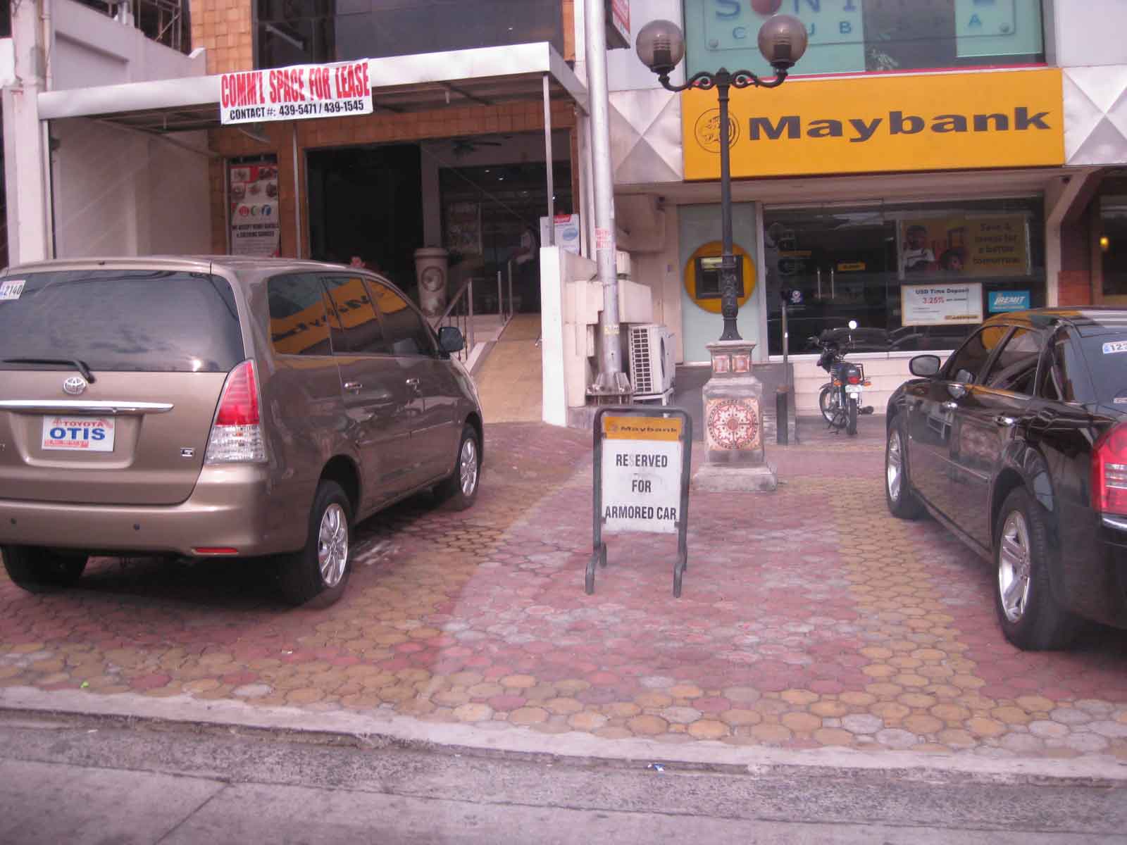 One issue along the street are public parking constructed using public funds being reserved by establishments such as this bank along Morato.